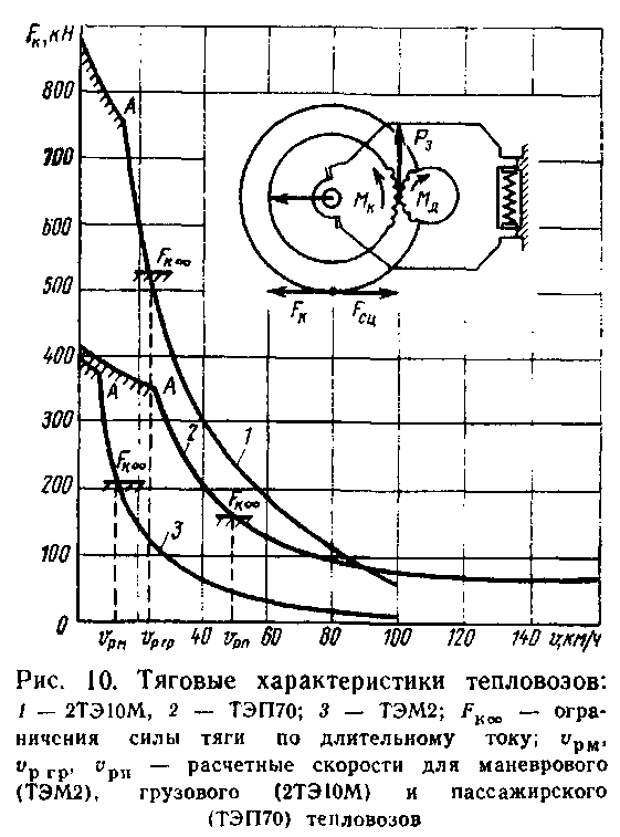 Тяговая характеристика тепловоза ТЭМ7. топлива. 6000. Тележки