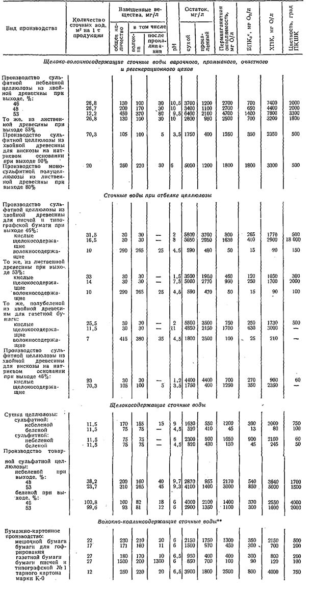 Характеристика загрязненных сточных вод отдельных производств ЦБП.