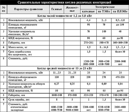 Сравнительные характеристики котлов различных конструкций.